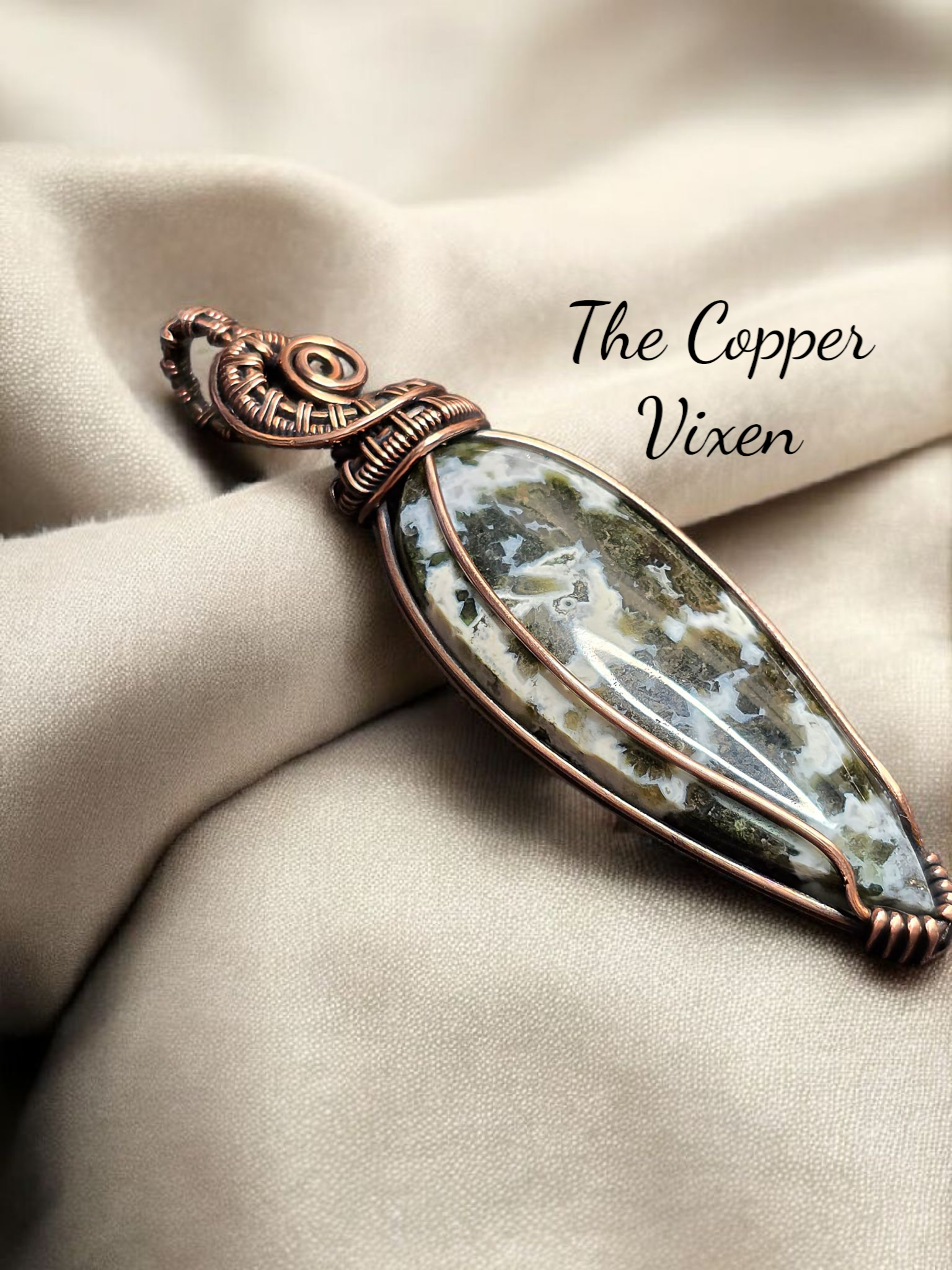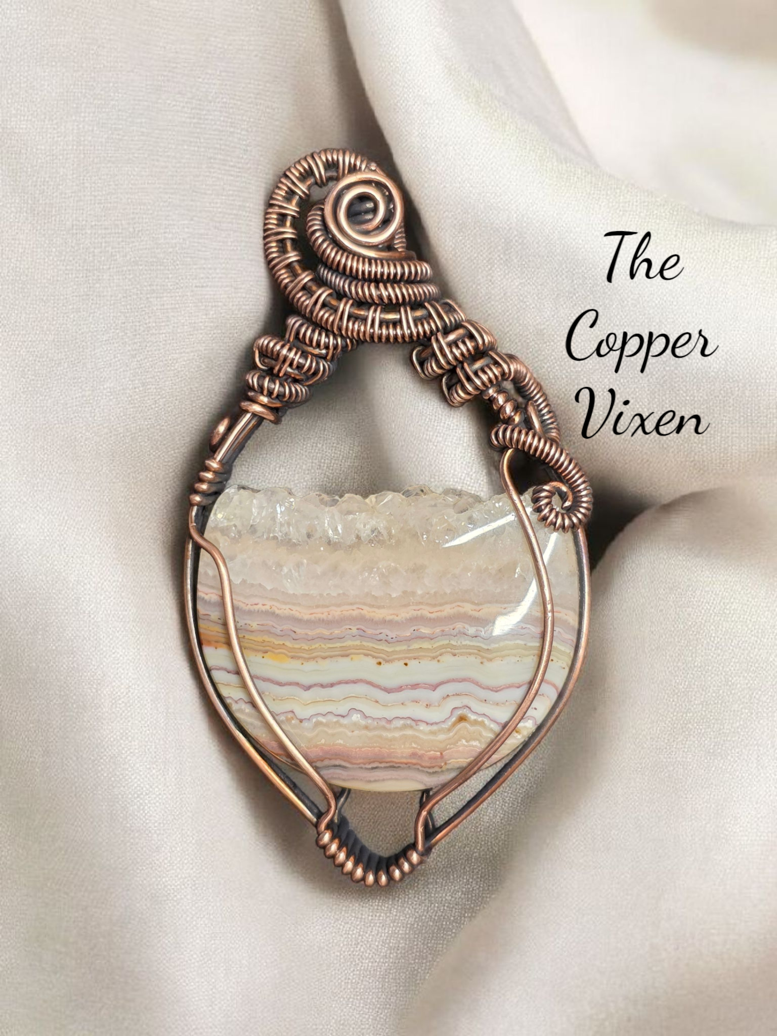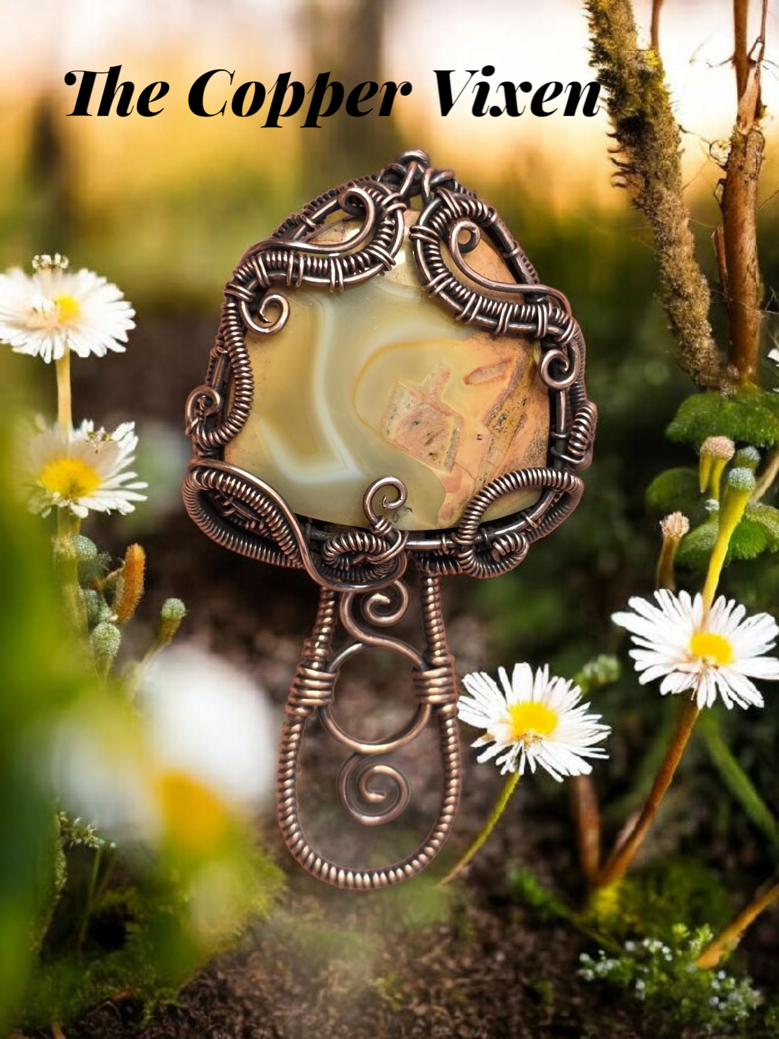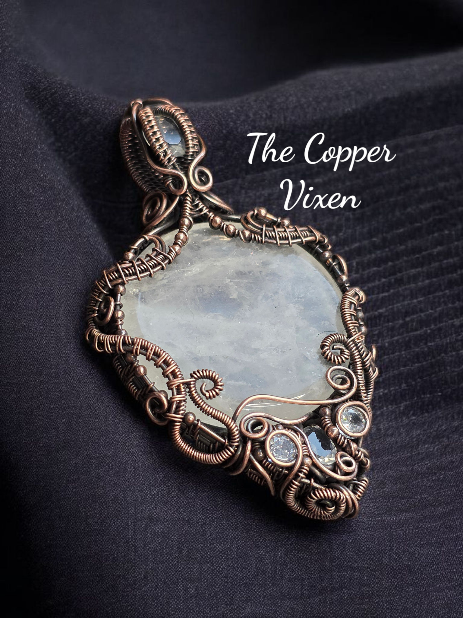All wrapped and woven by hand with raw copper and carefully curated crystals, glass, and found objects.
